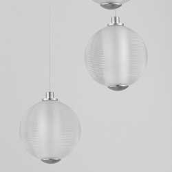 Ablaze with omnidirectional LED light radiating from the center of perfectly ribbed spheres, the lustrous glow within accentuates the repeating pattern on the glass' exterior. With minimal hardware visible outside the glass, select from Polished Chrome or Gold to match your interior's decor.