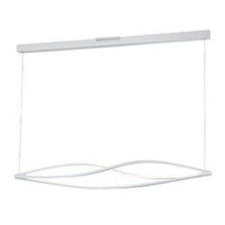Twisted aluminum channels of Matte White terminate into solid castings to form unique and functional lighting designs. Large scale pieces can be used in conference rooms and tall entries with the comfort of long life LED on board.
