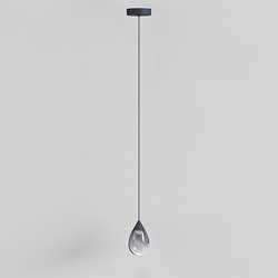 Suspended from slim cords, drops of blown glass encase a recessed LED light source casting light along the thick bottomed glass. Available in Polished Chrome with clear glass or Matte Black with Mirror Smoked Glass, this simple design adds a statement to light.