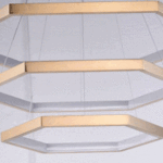 Hexagonal rings of multiple sizes are finished in beautiful Brushed Champagne. Perfectly suited to soft contemporary applications, these large scale sizes also work for commercial installations.