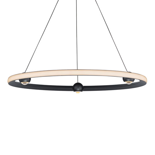 Introducing a new take on the now classically modern LED ring, large illuminated spheres act as "nodes" to support the tapered aluminum channel while also providing additional down light. Featuring a CCT selectable switch, the collection conveniently allows end users to select from warmer white light to energizing bright white lighting in 5 color temperature options. The convenient functionality is matched with its performance, meeting California's JA8 Title 24 requirements. Rated to deliver higher lumens per watt and power sources that supports range voltage input and 3 in one dimming, this product is designed to meet the requirements of both home and commercial projects.