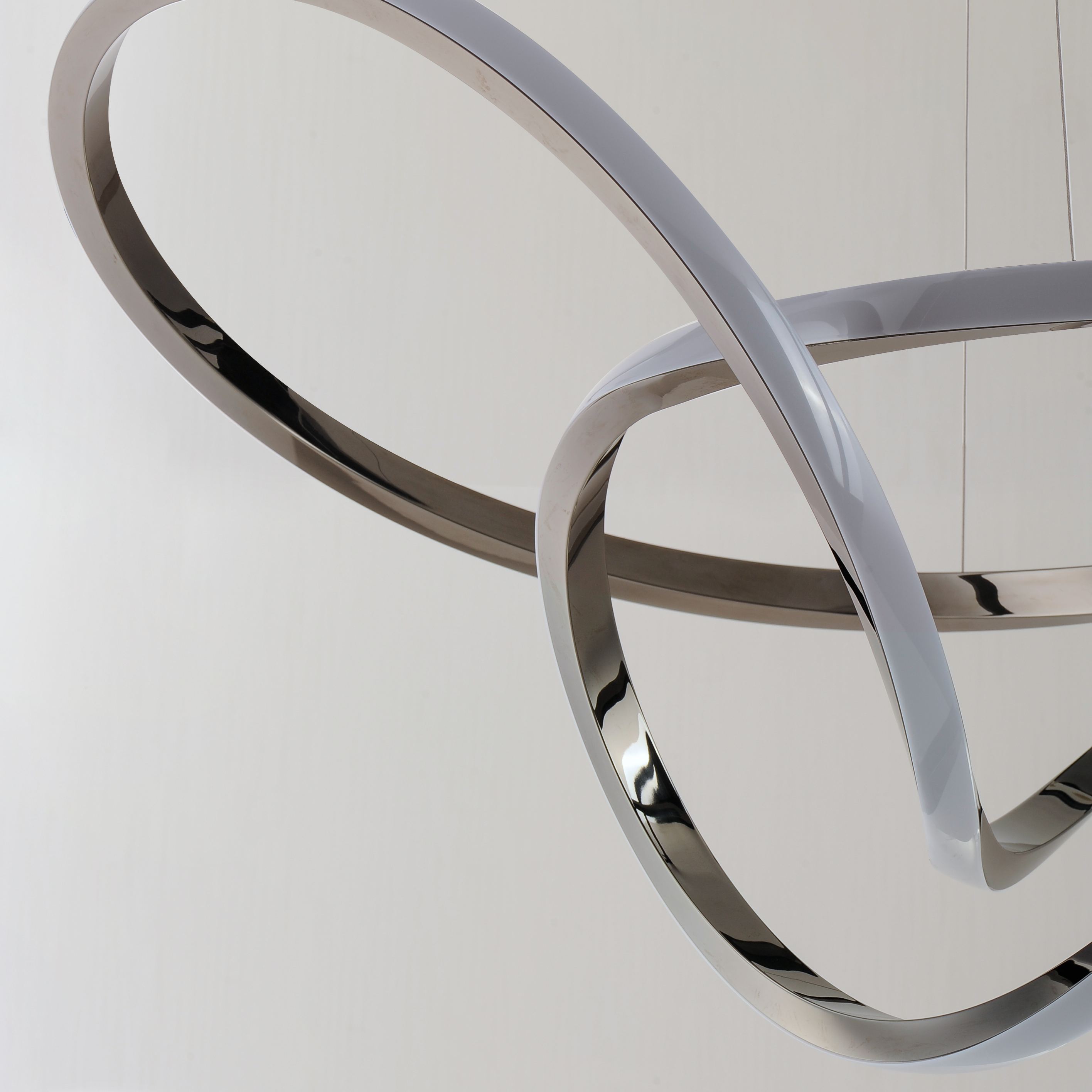 Sweeping lines curve and curl in a continuous motion, finished in a rich Brushed Champagne or Black Chrome. Not just a lighting fixture but a sculptural work of art. Gentle illumination moves in all directions for a dramatic lighting effect.