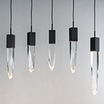 Stalactites of Clear Beveled crystal suspend from your choice of Polished Chrome or Black supports, can be hung at various heights to create a spectacular array. The crystal shimmers as light diffuses through the facets powered by 90 CRI LED dimmable modules.