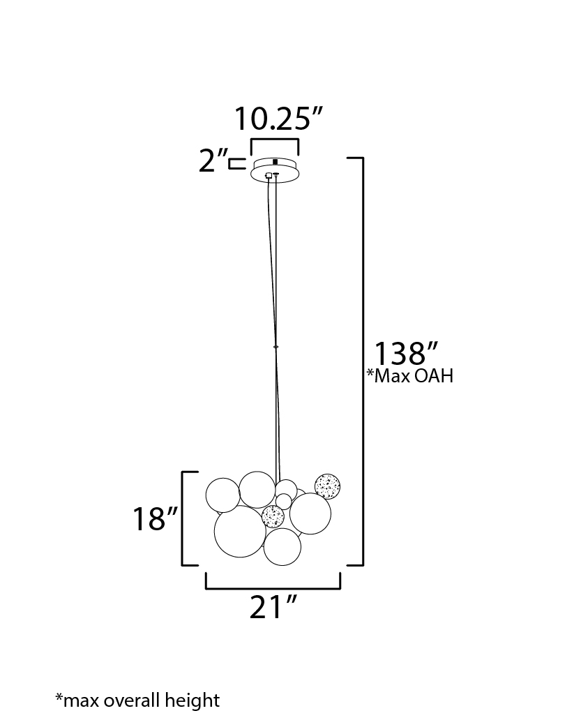 Evocative of turbulent skies, Stormy is a sculptural masterwork that transforms negative space into visual drama. A billowing cluster of stainless-steel spheres, finished in a moody interplay of Black Nickel, French Gold, and Polished Chrome, creates an abstract cloudscape of extraordinary depth. Floating among the forms, matte white glass globes in varying sizes emit a layered, ambient glow, while discreet canopy-mounted downlights provide refined functionality. Offered in two commanding sizes, Stormy is both art and atmosphere--an expression of elemental motion rendered with impeccable precision.
