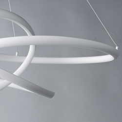 Arched Matte White aluminum channel is artfully formed into unique lighting sculptures. Two rows of LEDs are used to double the light output but are fully dimmable for your comfort level.
