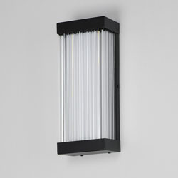 A colonnade of faceted crystal columns form these rectangular wall sconces suitable for wet locations. The crystals are backlit with an evenly distributed LED light source that is set within non-corrosive Aluminum and Stainless Steel frames. With an extension compliant for ADA applications, this collection can be used on the interior or exterior of any space.
